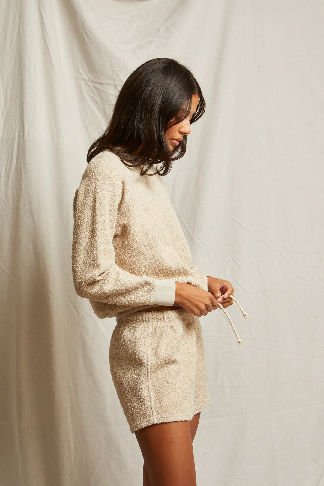 dani summer boucle drawstring short by perfectwhitetee - putty